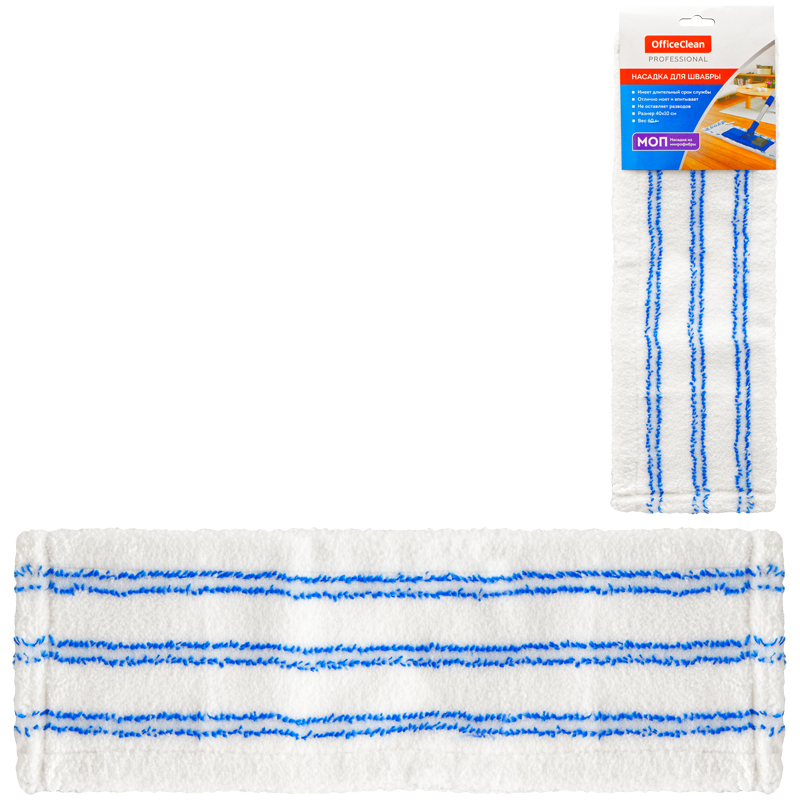 Насадка Моп плоская 40х10см, OfficeClean Professional с карманами, микрофибра/абразив, бело-синяя 23