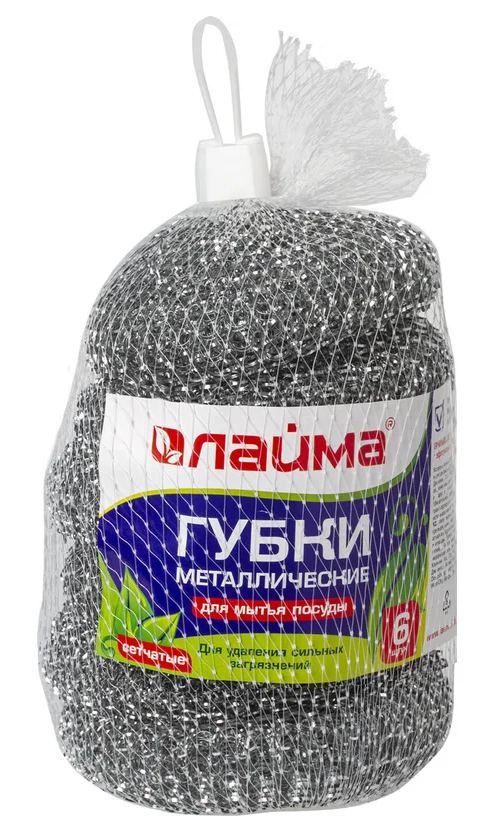 —Губки (мочалки) для посуды металлические ЛАЙМА, по 1 шт.(в комплекте 6 шт.), сетчатые по 15 г